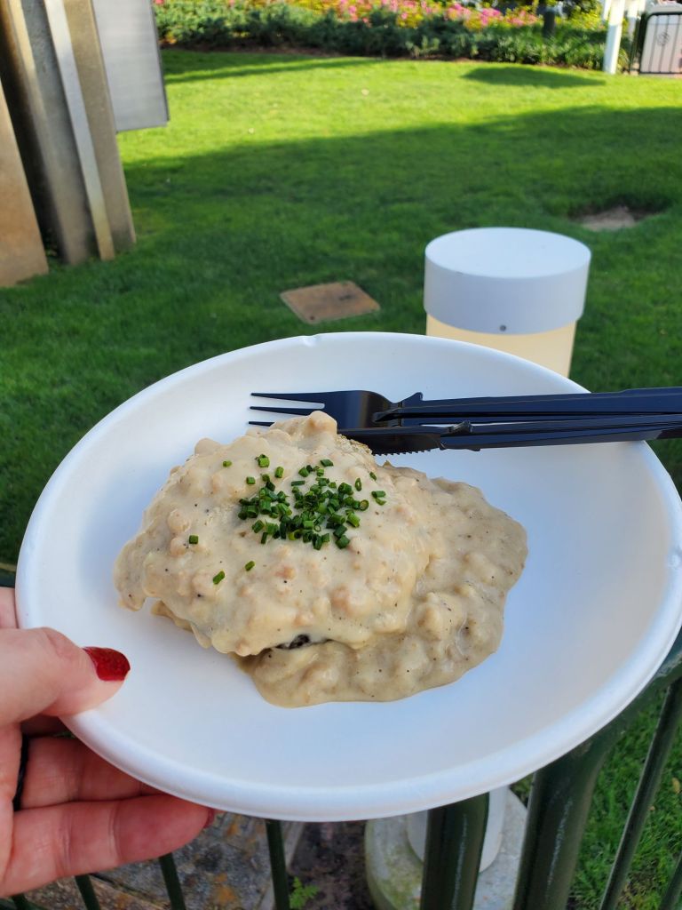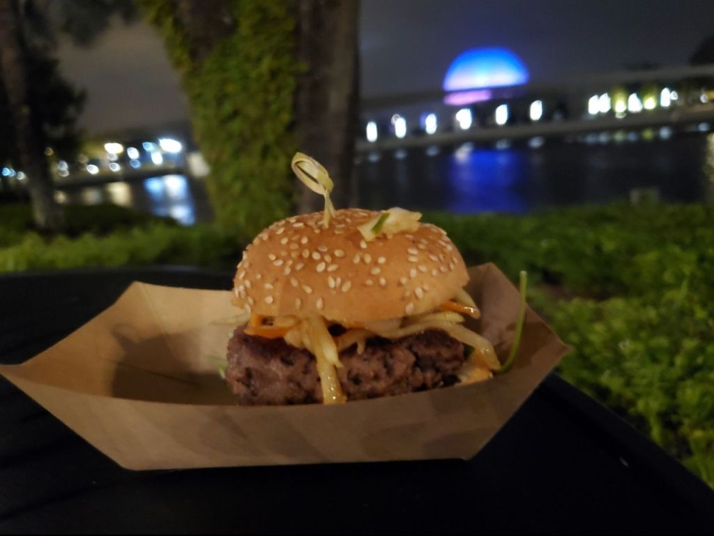 2) Top 5 food items – My mom and I constantly checked the Walt Disney World site to finally see menus for the Flower and Garden Festival booths. My recommendation would be to look through the menus and pick the top 5 items you want to try. Despite an injury, I was still able to try almost everything I wanted to. My top food items were: La Isla Fresca’s Impossible Jamaican Beef Patty ($6.50), Trowel and Trellis’ Farmhouse Meatball ($6), Hanami’s Steamed Bun ($8.50), and Brunchcot’s Biscuit and Gravy ($6.75).