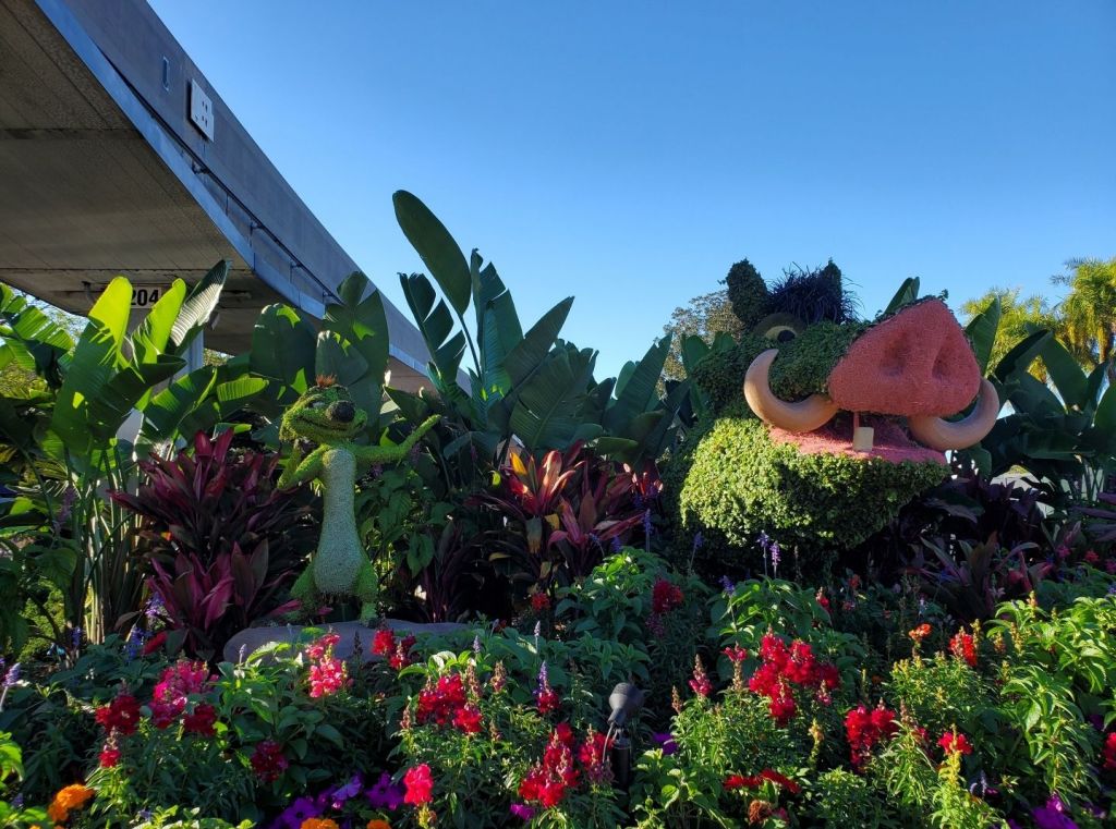 This beautiful display features both Pumbaa and Timon and is located near the Land Pavilion. I love all the flowers and greenery involved in this!