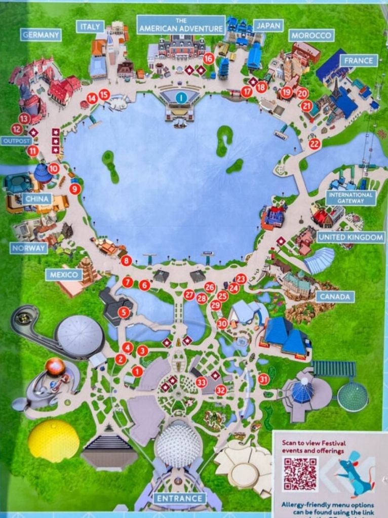 This year, the festival is running from August 29 until November 23, which is shorter than the past few years. They also have 33 different booths and 5 different offerings at other regular year round locations at Epcot. With so many booths, there is definitely something for everyone to be excited about. Below are all the booths (going around the world starting by Mission Space) and what they offer!