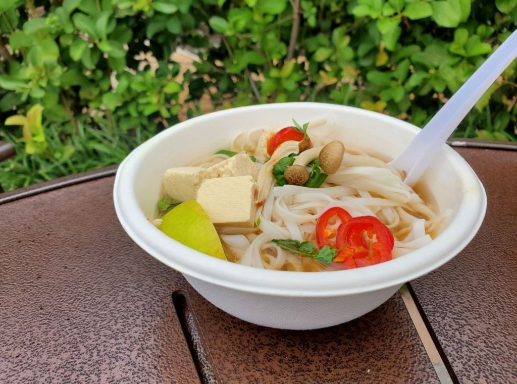 It it so hard to find plant based steamed buns so I don’t really have much to compare this to. Overall, I enjoyed this so much but did think it was overpriced. It was one of my favorite items from the festival so I would have ordered it again if I could have, but over $8 for a steam bun just feels really expensive. My only other complaint would be that the steamed bun stuck to the wrapper. Other than that, the steamed bun had a great texture and wasn’t too dry. The filling is soy based and had a wonderful onion and soy sauce flavor.